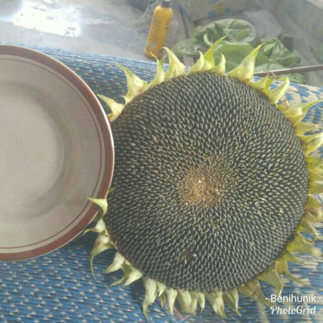 Isi 10 ***** kemasan aluminium foil ( sehingga terjaga kwalitasnya ) bunga sangat besar diameter bunga bisa sampai 30 cm biji nya ukuran besar biasa dibuat .
